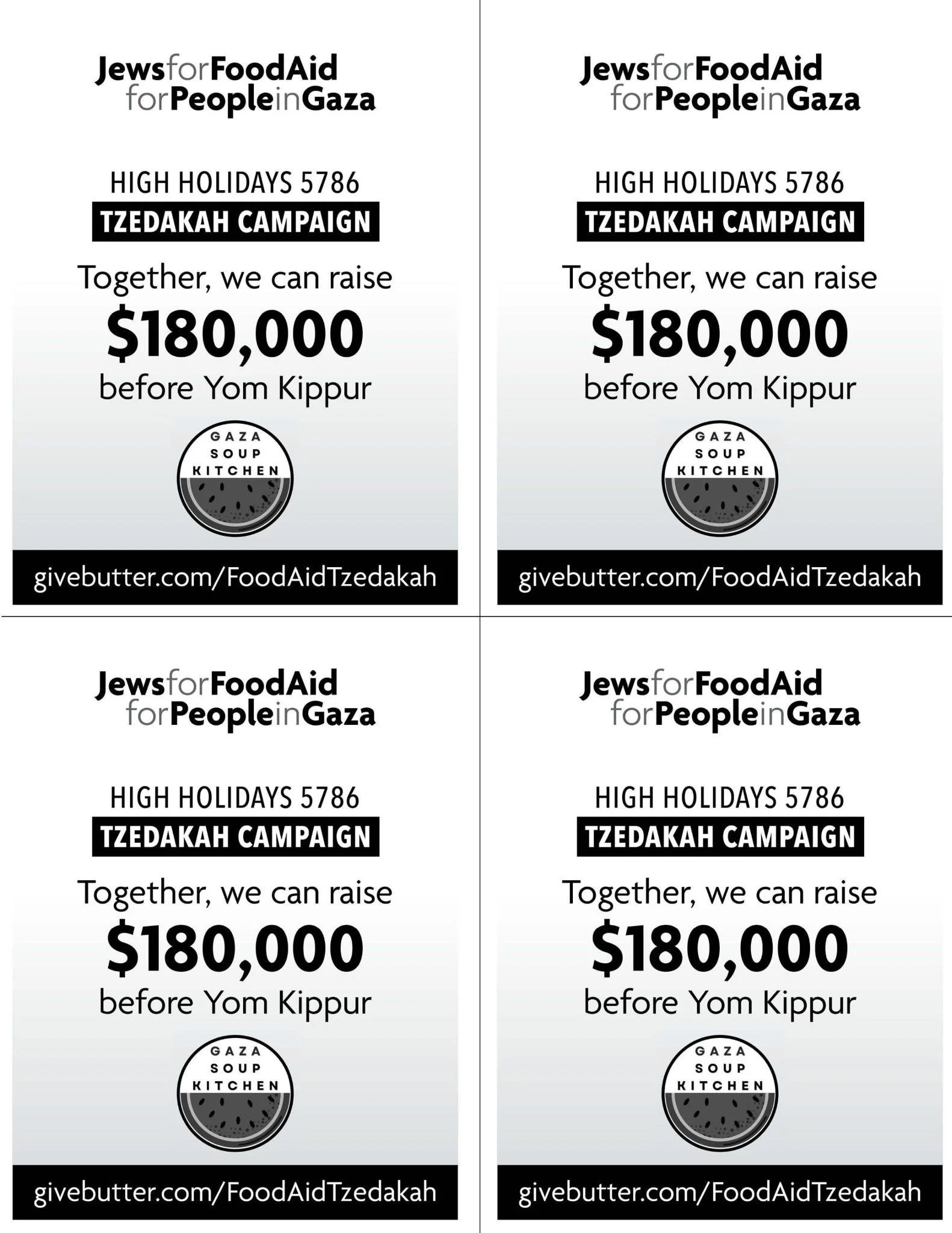 Post one of the below graphics to social media as is, or print it out and take a photo of yourself holding the graphic and post that! Also consider putting up the printed version around your neighborhood or congregation. Don’t forget to use the hashtag #JewsForFoodAidForPeopleInGaza and tag @jews_for_food_aid on Instagram.